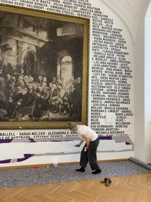 Permanente Intervention zur Kontextualisierungdes Gemäldes "Eine Sitzung der KaiserlichenAkademie der Wissenschaften in Wien" von OlgaPrager (1872–1930). Anbringung in chronologischerReihenfolge der Namen aller weiblichen Mitgliederbis heute. Nach jeder Wahl neuer Mitglieder wird dieInstallation erweitert.________________________________________________